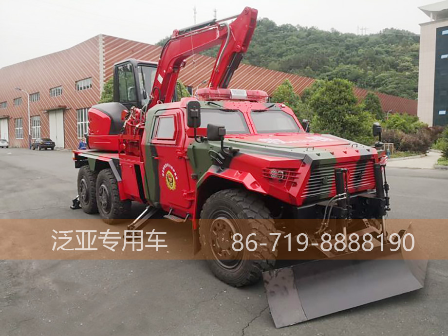 猛士6X6抢险破障车,从功能到性能上,它用猛士的威力,组装清障推土铲和小型挖掘机,在生命与时间和速度的救险的道路上开辟了一个新的机会。