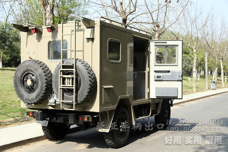 尾部悬挂装配2条备胎,车辆还配备2个油桶,给车友在云游四海的路上,提供了充足的保障。
