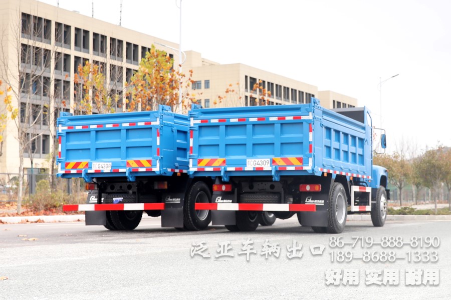底盘车架采用双层设计,高度均为230mm,轴距均为3700mm,货箱尺寸均为3800*2200*1000mm,货箱侧边厚度均为4mm,底板厚度均为5mm,边板花纹为田字格。