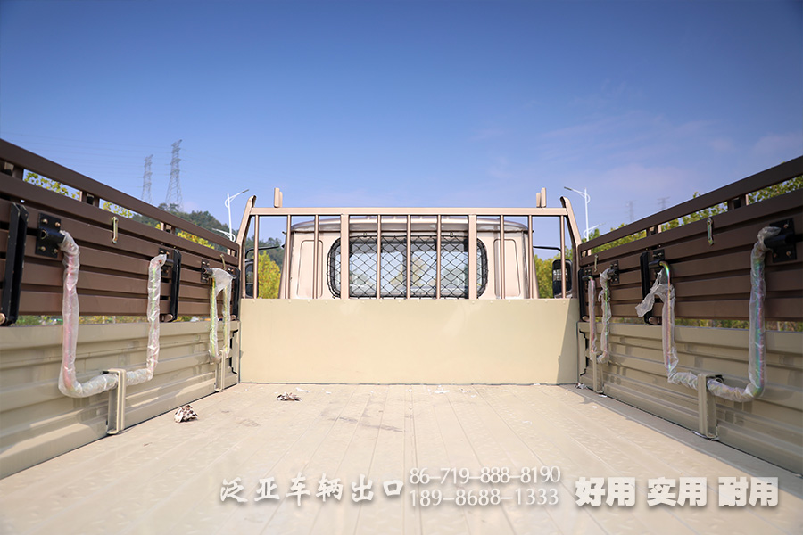 货箱内部可安装折叠座椅,可容纳12人。同时配备有可拆卸的蓬布篷杆,可以防止雨水风沙。