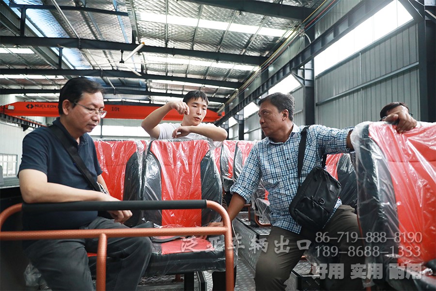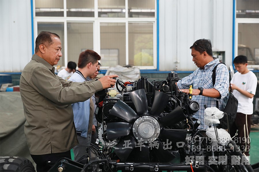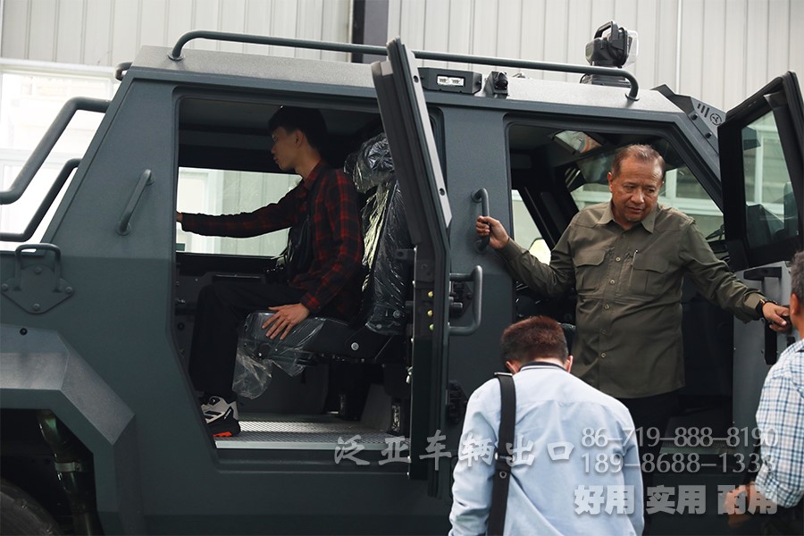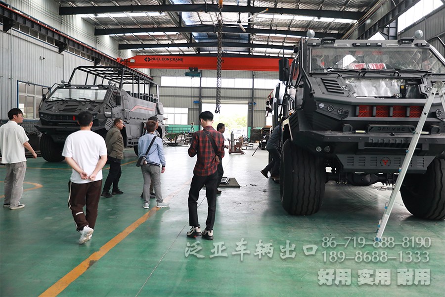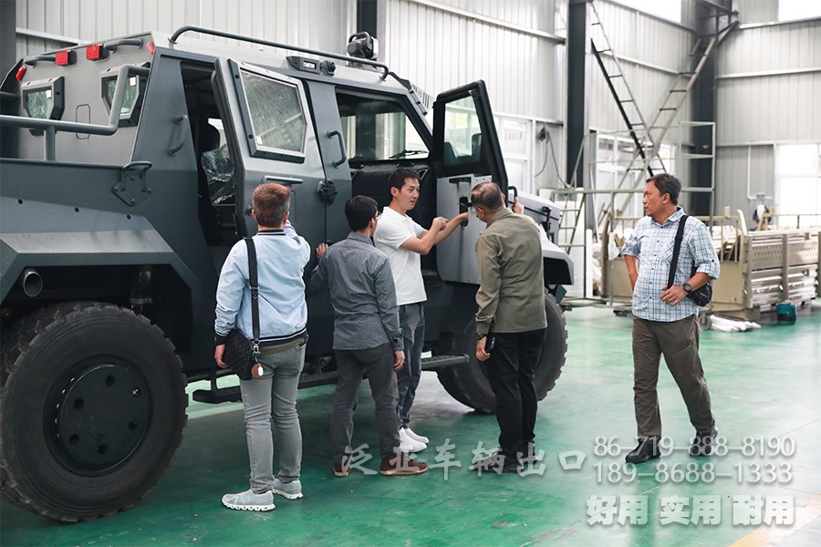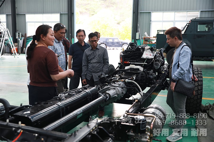 印尼客户详细观看我公司的越野车三类底盘、沙漠车、猛士车、装甲车等相关车辆,并给出好评