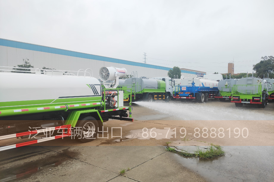 上装 可后冲,后洒,侧喷,高炮,带洒水平台,吸水管2根,带有音乐喇叭和消防接口,尾部平台带喷雾机
