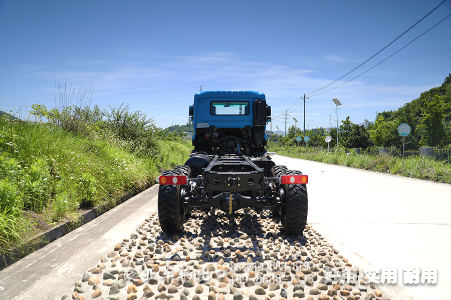 6x6东风重型专用车底盘,总质量可达25吨,六轮驱动使得它可以在山路、森林等地区行驶,适合改装成载货卡车、自卸汽车、混凝土搅拌车等专用重型车。