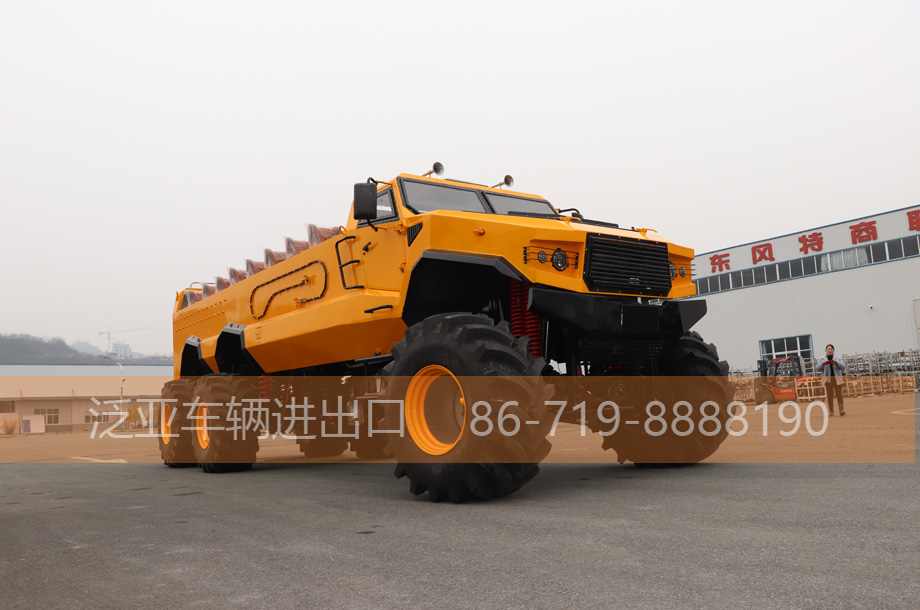 专用配置 | 1、前中后悬架全新开发,自主专利设计(外观设计专利证书ZL 2018 3 0507510.7),弹簧行程大,舒适性和稳定性高; 2、6×6全轮驱动,专利设计(实用新型专利证书ZL2018 2 1593556.6),适应沙漠地区; 3、全新研发的前脸,专业大脚怪式沙漠旅游车; 4、自动开启的尾部仓门,方便乘客上下车; |